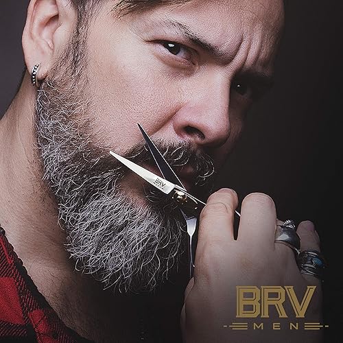 QUALITY IN A MULTI-PURPOSE TOOL Grooming is a private pleasure best enjoyed with products you trust, and that represent the man you are. Our BRV MEN beard shears are ergonomically designed to a professional standard, and are ideal for all the precision that trimming requires. From mustache to beard, and from sideburns and eyebrows you’ll need no other tool. Beard Scissors For Men.