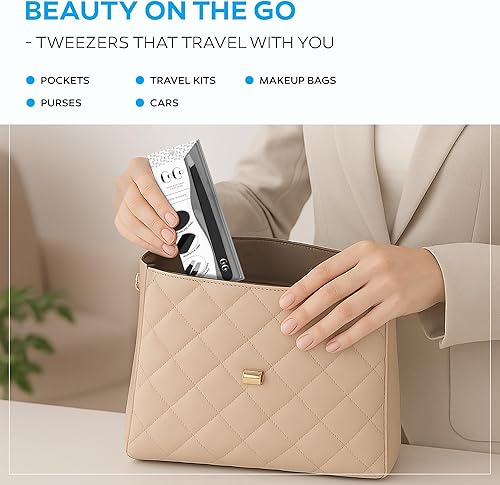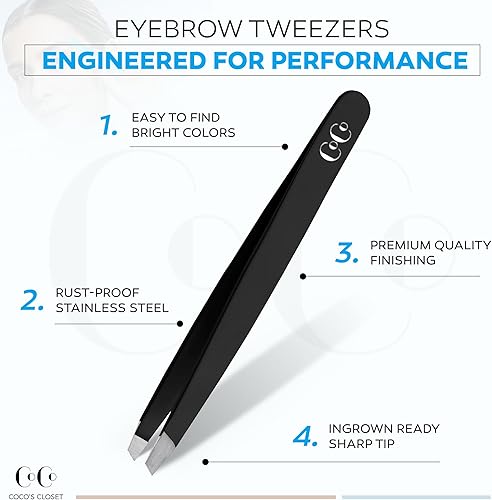 PRECISION SLANTED TIP – Premium stainless steel tweezers with hand-filed, perfectly aligned slant tips deliver flawless precision. Ideal eyebrow tweezers for shaping brows, plucking fine hairs, and grooming facial hair.