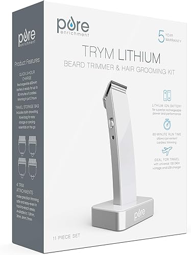 Pure Enrichment TRYM Cordless Beard Trimmer - 11pc Kit(White)