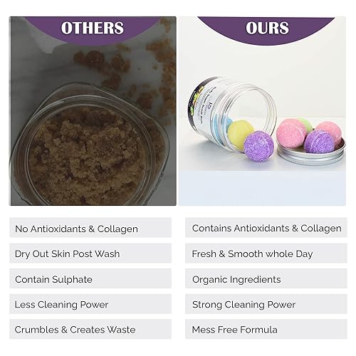 NO CRUMBS, NO PRODUCT WASTE - Our single-use sugar scrub balls are expertly designed to eliminate disintegration into small, inconvenient pieces. The creamy texture ensures a mess-free application on any body part, making your skincare routine a luxurious experience.