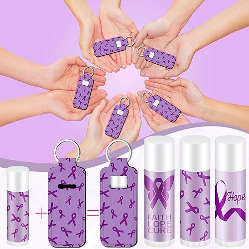 Faith Hope Cure Awareness Favors Bulk: this comprehensive Faith Hope Cure Awareness items comprise 18 Faith Hope Cure Awareness lip balms and 18 lipstick holder keychains to prevent lipstick from dirt; You can be making it ideal for gifting or fundraising event