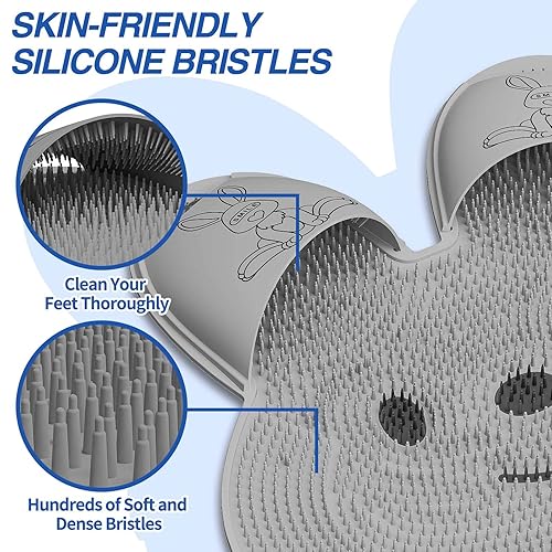 Rabbit Shower Foot Scrubber Mat - Non-Slip Silicone Pedicure(Gray)