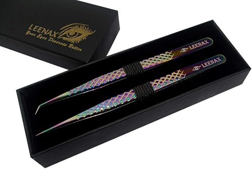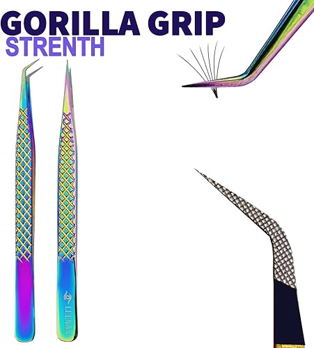 Rainbow Diamond Grip Eyelash Extension Tweezers Set(Multi)