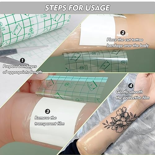 【ContourFit Application】- 10-Second Custom Sizing Smart grid system allows exact sizing without measuring tools – stretch 220% to wrap tricky areas (knuckles/hipbones). QuickRelease adhesive removes residue-free. Artist-approved: 500+ US studios use this method for seamless aftercare.