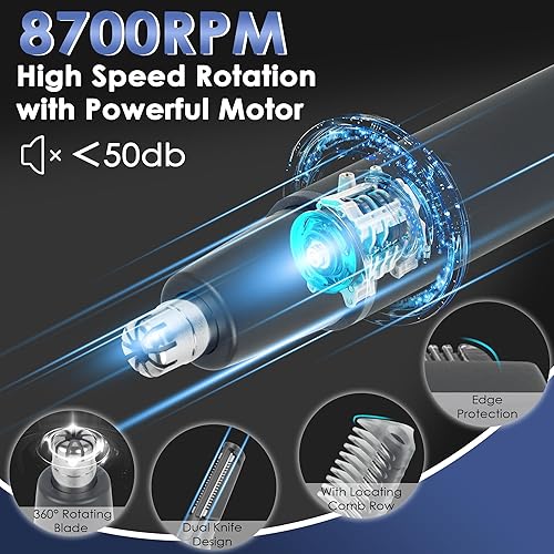 Say goodbye to tugging: Nose and Ear Hair Trimmers with 8700RPM high speed rotary shaving and precision-crafted blades for a closer and comfortable shave, for precise removal of unwanted hairs, , easy to deal with thick beards, shaving is more thorough, no pain or unpleasant pulling sensation(For nose hairs, ear hairs, eyebrows, mustaches, sideburns and other body hairs)