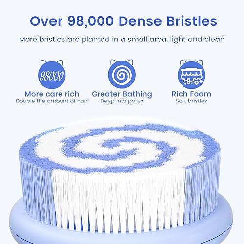 Dual Brush Heads & Targeted Skin Care: Equipped with two interchangeable heads, this body scrubber meets different body care needs. The cleansing brush features 98,000 ultra-soft bristles that create a rich, delicate lather to deeply remove impurities without irritating the skin. The lotion applicator helps apply body lotion, essential oils, or moisturizers evenly - perfect for gentle hydration and after-shower care