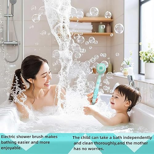 【2 Spinning Speeds Electric Bath Brush】:Smart one-touch design, makes it easy to use. The body shower brush head rotates 360 ° at 11,500 times per minute, can be used with soap, facial cleanser or body wash to deeply clean pores, removes dirt, oil and softens dead skin, massage baby's skin,leaving you with silky skin.