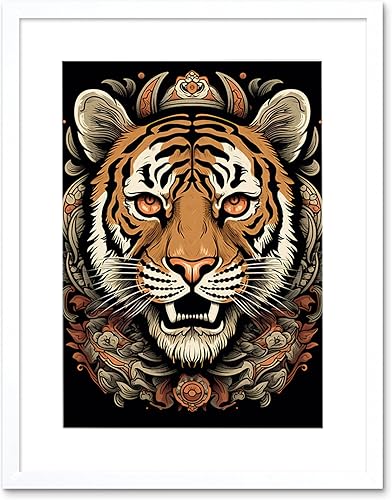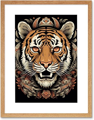 Regal Tiger Framed Wall Art - 12x16" Americana Print(Framed Brown 12X16)
