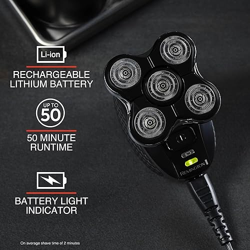 AWARD-WINNING PERFORMANCE: Remington Balder Pro XR7000, Number 1 Head Shaver brand in the US, offers unmatched precision. Enjoy a smooth shave with flexing steel blades, cordless lithium power, a hair capture chamber, and a fully waterproof design