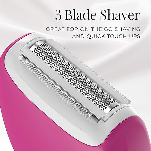 Curved dual trimmers for precision – designed to hug the body’s natural curves for smooth results on legs, underarms, and bikini line