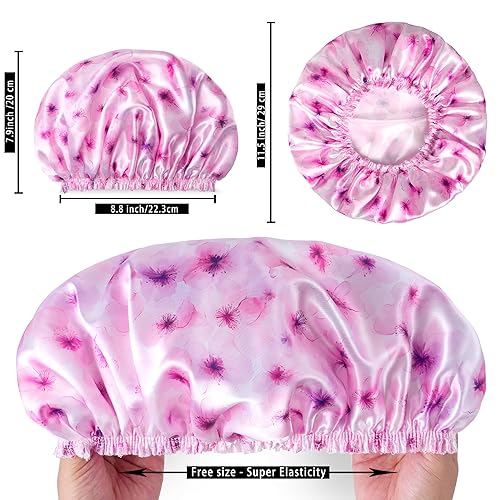 Reusable Shower Cap for Women - 4 PCS Waterproof Bath Caps