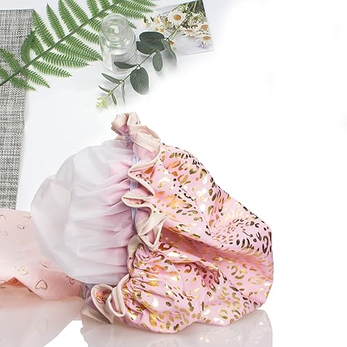 Double-Layer Shower Hat: As the shower accessories for women, our shower bonnet contains two layers which inner layer is waterproof PEVA to keep your hair from getting wet in bathing, outer layer is polyester with delicate style to make the hair cap be beautiful
