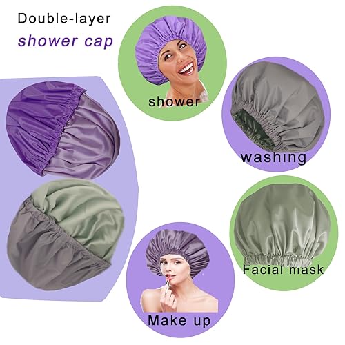 Reversible Satin Shower Cap for Women - Waterproof & Adjustable(L-Purple+ Light grey)