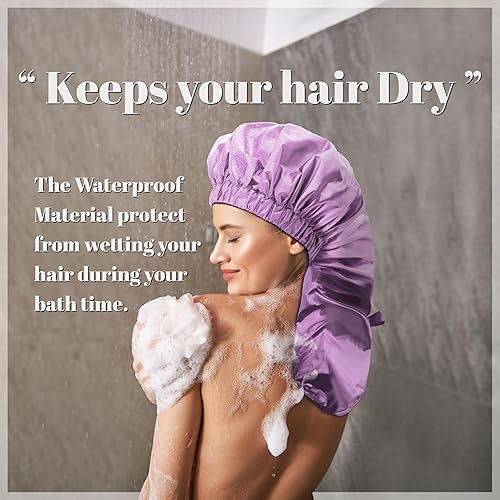 [Premium Fabric]: This shower cap is made of high-quality, waterproof polyester fabric that effectively prevents hair from getting wet during a shower or bath, keeping it dry and clean.