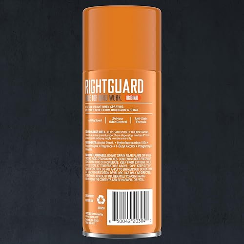 24-HOUR ODOR CONTROL: Right Guard deodorant spray was built for those long days when you need odor protection the most. With 24 hours of odor control, you can work even harder and smell better.