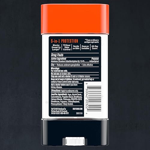 5-IN-1 PROTECTION: This antiperspirant deodorant delivers hard-working sweat and odor control for every hard-working man. Blocks sweat 2X longer with 72HR control, goes on invisible, is gentle on skin, and provides an all-day scent men trust