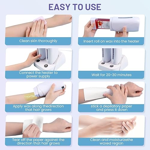 Easy to use and operate - Simply install the roller wax cartridge, place it on the base, plug in the power, and the machine will automatically start heating. You can observe the melting of the wax through the window to see if it reaches your desired consistency. It's not recommended to wait too long as it may become excessively hot when used.