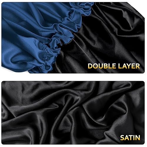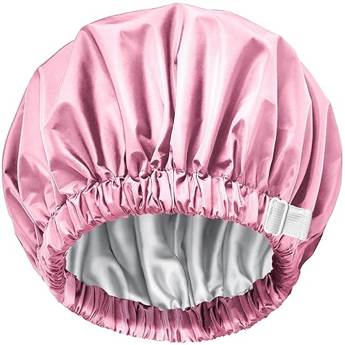 1.【Double Layer=100% Waterproof】: Made with a dual-layer design, featuring waterproof silk satin cotton and a soft satin lining.shower bonnet also can effectively prevent your hair from getting wet during showers or baths, maintaining dry and clean hair.