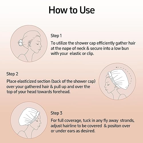 Equipped with a high-quality elastic band and refined stitching, our shower caps provide a snug yet gentle fit without leaving marks on your forehead. They offer superior comfort even after extended use and are suitable for most head sizes and hair volumes.