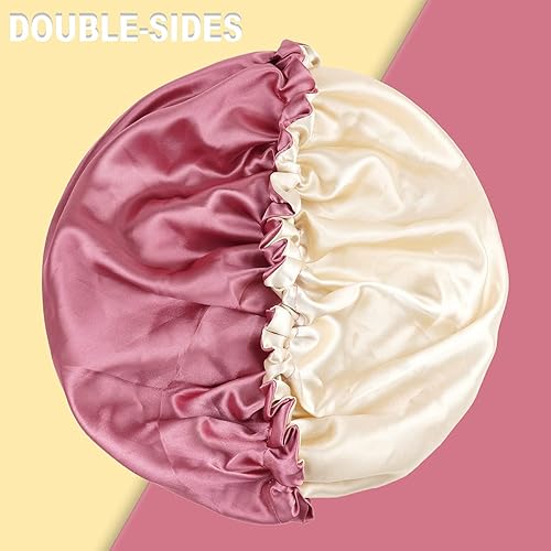 Satin Sleep Cap for Hair - Double-Sided Adjustable Bonnet (Green)(Hot Pink,1-2)