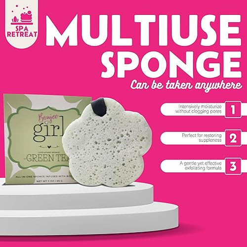 INFUSED WITH REFRESHING GREEN TEA SCENT: Experience a gentle, aromatic embrace with our sponge infused with high-quality Green Tea scent. This luxurious infusion not only refreshes but also hydrates your skin, providing a soothing, spa-like experience with every use.