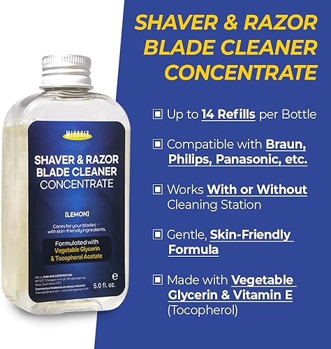 Made for All Shavers and Razors — This powerful blade cleaner concentrate is designed to help remove stubborn hair, skin oils, and buildup from electric shavers and manual razors, keeping blades clean and fresh so you can enjoy a smooth, comfortable shave every time you use it.