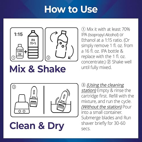 Easy Home Mixing for Maximum Savings — Simply mix 1 part of this concentrated formula with 15 parts 70% or higher isopropyl alcohol (IPA) to create an effective shaver and razor cleaning solution at home. This easy mixing method helps you save money and reduce plastic waste compared to buying single-use cleaning refills.