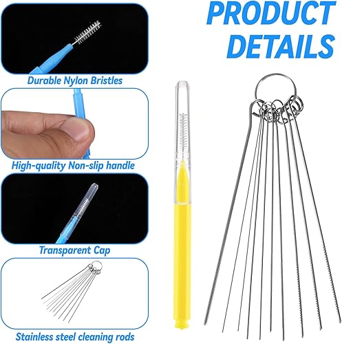 【High-Quality Material】 The 20pcs anti clogging bleaner brush are made of high quality nylon bristles with thickened steel wires, which are sturdy and durable enough to be flexible enough to be easily inserted into small holes and quickly remove buildup. Each brush comes with an individual transparent cover that protects the bristles to keep them clean and tidy all the time