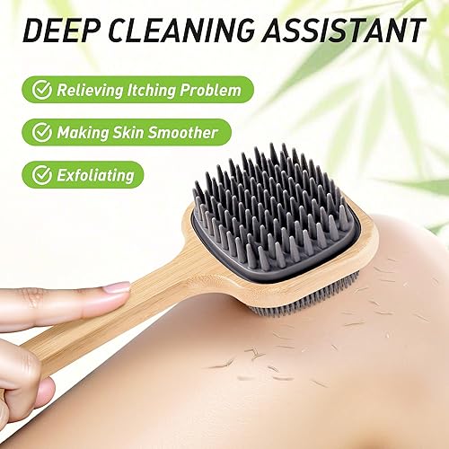 Durable & Eco-Friendly, Lasts Years: Back scrubber for shower for men with sturdy bamboo handle and tough silicone bristles hold shape over time. shower back scrubber with care, lasts 3-5 years. shower brush for body works well with shower gels or soaps.