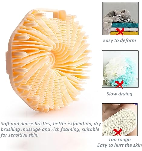 [Portable and Widely Used]:Exfoliating body scrubber can be used as shower brush, facial brush, massage brush, if necessary, you can also use it as a dishwasher in the kitchen. Portable in size and easy to use.