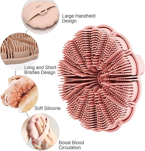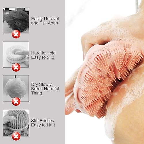 Silicone Body Scrubber - Exfoliating Shower Brush for All Skin(Pink)