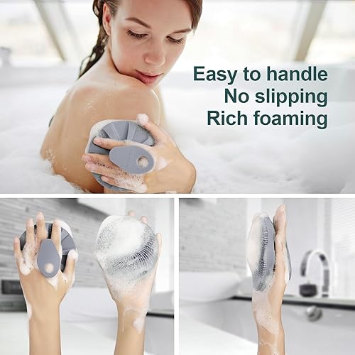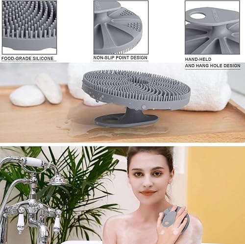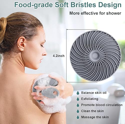 Silicone Body Scrubber - Exfoliating Shower Brush for All Skin Types(Gray)
