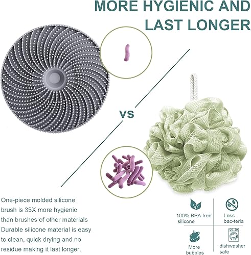 Gentle Exfoliating and Deep Cleaning: Crafted with flexible, high-density silicone bristles arranged in a unique spiral pattern, this body scrubber enhances friction for more effective skin cleansing. The silicone bath brush can gently exfoliate pores, removes dirt and body oils, and helps soften skin for a glowing complexion.