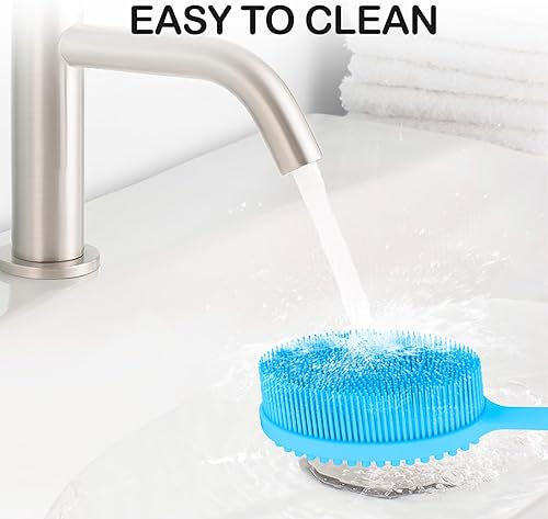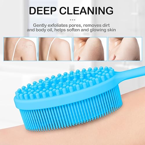 Multiple Colors & After-Sales Service: Our silicone scrubber body and shower brush cleaner with long handle comes in 4 colors, enough for your daily life. It is suggested that do not use the silicone body brush exfoliator and back cleaner for shower to do any dry or wet brushing on the cut. A wise choice to select our back washer for shower for women and mens shower scrubber as your shower exfoliator