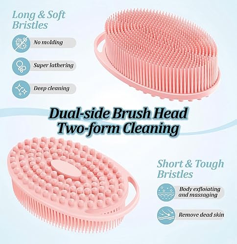 Double-Sided Deep Cleaning: back scrubber for shower features a dual-texture design—one side with soft bristles for foaming and deep cleansing, the other side with massage bumps to exfoliate, stimulate circulation, and body scrubber promote healthier skin.