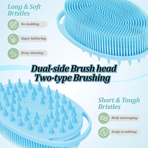 Silicone Body Wash Set with Long Handle & Shower Brushes