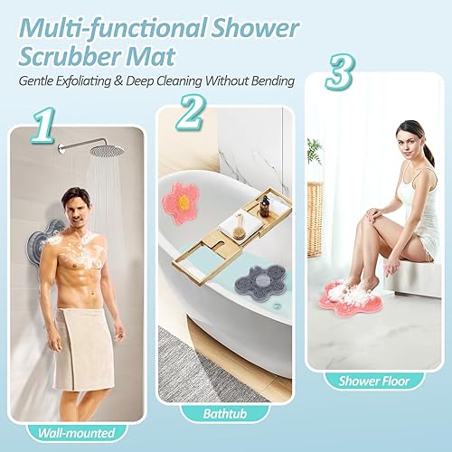 【Improve Skin Appearance & Overall Health】 GEENOA shower scrubber mat can efficiently remove dirt and polish calluses, while massage to promote blood circulation and relieve fatigue. It saves your trouble to bend over to wash hard-to-reach areas. What's more, it is a great aid to wash whole body if you are suffering from finger or hand inability.