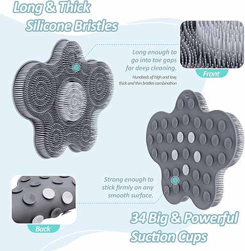 【Long/Thick Silicone Bristles & Big/Strong Suction Cups】Hundreds of high and low, thick and thin bristles combination. Long enough to go into toe gaps for deep cleaning. 35 Big Size Suction Cups - Strong enough to stick firmly on any smooth surface.