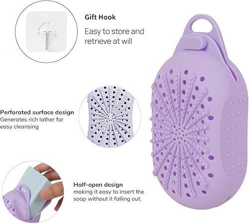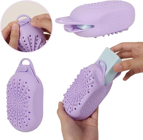 Silicone Soap Saver Bag - Dual-Sided Scrubber & Quick-Dry Box(Purple)