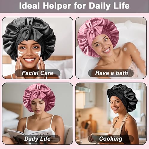 【Wide Range of Uses】Beyond bedtime,this silk sleep bonnet doubles for workouts,skincare,showering,cooking,studying,SPA,or daily chores.We offer big satin bonnet in different colors,pair it with pajamas or activewear for effortless style.
