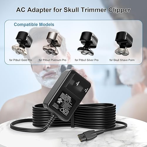 Power Cord Compatibility:Power Cord Charger Compatible with Skull shaver,for Pitbull Silver Pro;for Pitbull Gold Pro;for Pitbull Platinum Pro;for Skull Palm;for Skull Beast Clipper Pro;for Butterfly Kiss Clippers