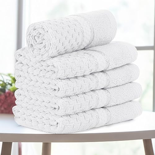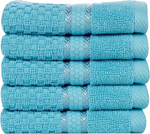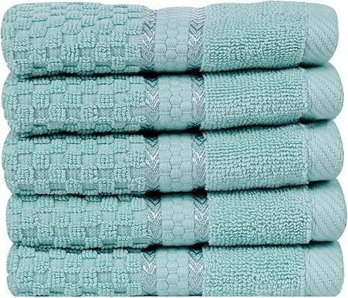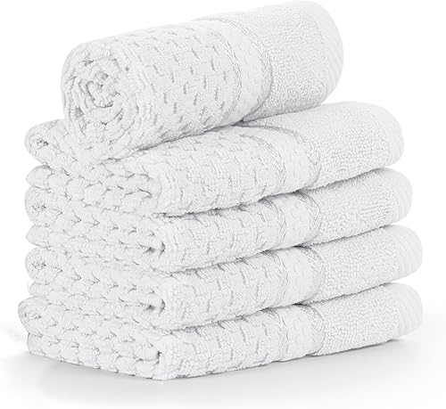 Sky Blue Wash Cloths 5-Pack - 100% Cotton Quick Dry(White,Washcloths Set of 5)