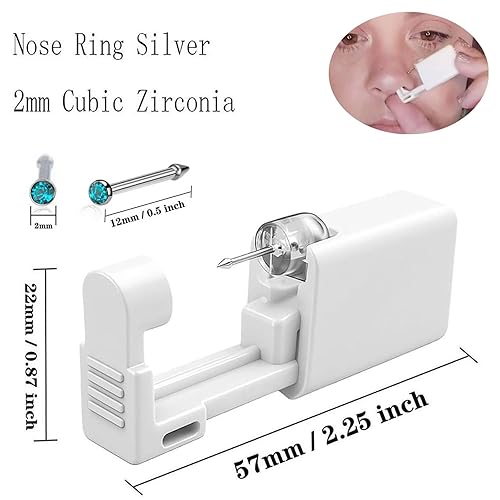 Nose Pierce Kit Size: Pierce gun size, length: 57mm, height: 22mm. piercing nose stud size, Length: 12mm, Crystal height: 2mm