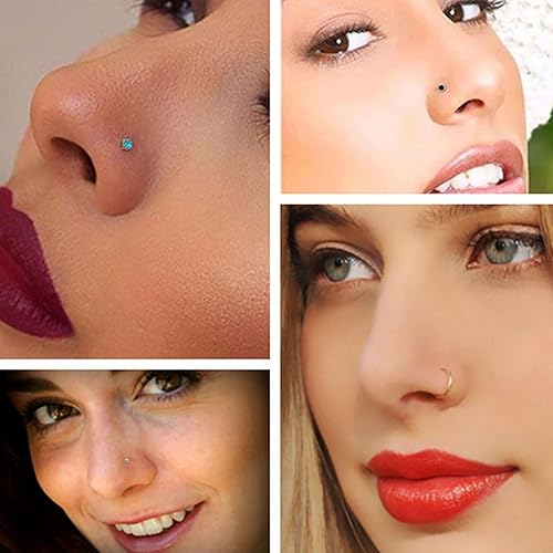 SLVIEKAE 4-Pack Nose Piercing Kit with Sterile Gun & Gold Studs(Blue)