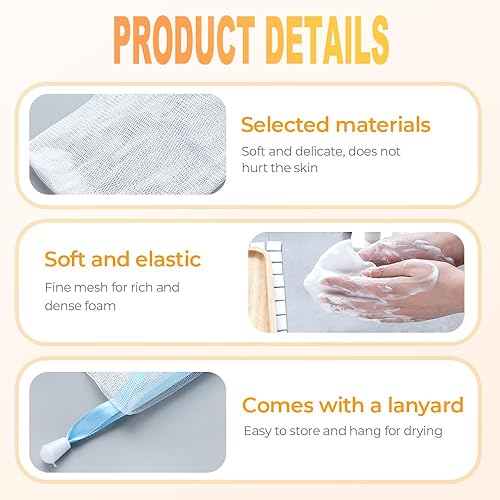 Luxurious Lather & Waste Reduction: Our Foaming Mesh Bag for Soap effortlessly generates a rich, abundant lather, elevating your bathing experience. It's designed to utilize every bit of soap, including scraps, thereby extending the lifespan of your soap bars and minimizing waste.