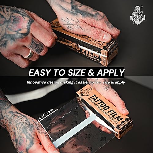 EASY TO CUT & APPLY – Increased elasticity allows our tattoo protection film to be effortlessly applied. Our new packaging design makes it easier to cut, size & apply the tattoo bandage.