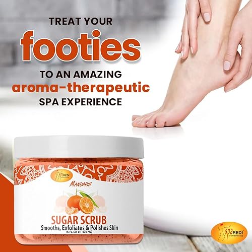 Spa Redi – Sugar Body Scrub, Mandarin, 16 Oz, Exfoliating, Moisturizing, Hydrating And Nourishing, Glow, Polish, Smooth And Fresh Skin - Body Exfoliator