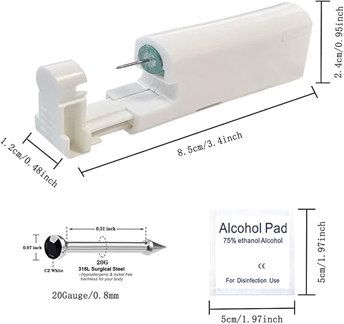 ✔️【Easy to use】- Hold both ends of the nose piercer with your hands, do not hesitate to align the tip of the nose piercing gun with the mark and press it firmly.