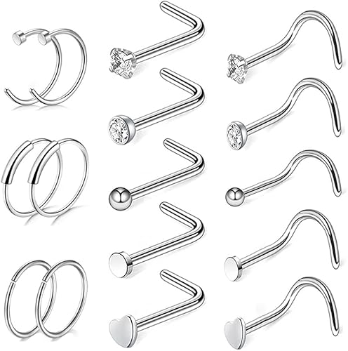 ✔️【High-quality material】-The nose stud material is made of cubic zirconia and 316L surgical stainless steel, which is non-allergic and non-inflammatory.