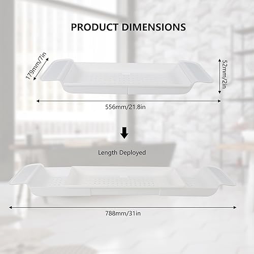 Stretchable Bathtub Tray | Anti-Slip Caddy, Strong & White(White)